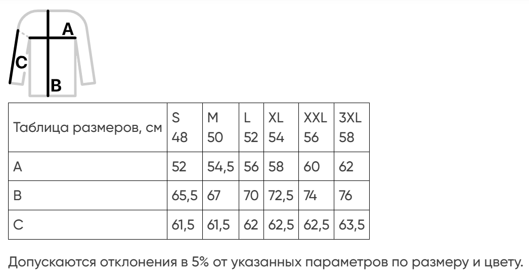 • Края рукава и низ изделия выполнены резинкой