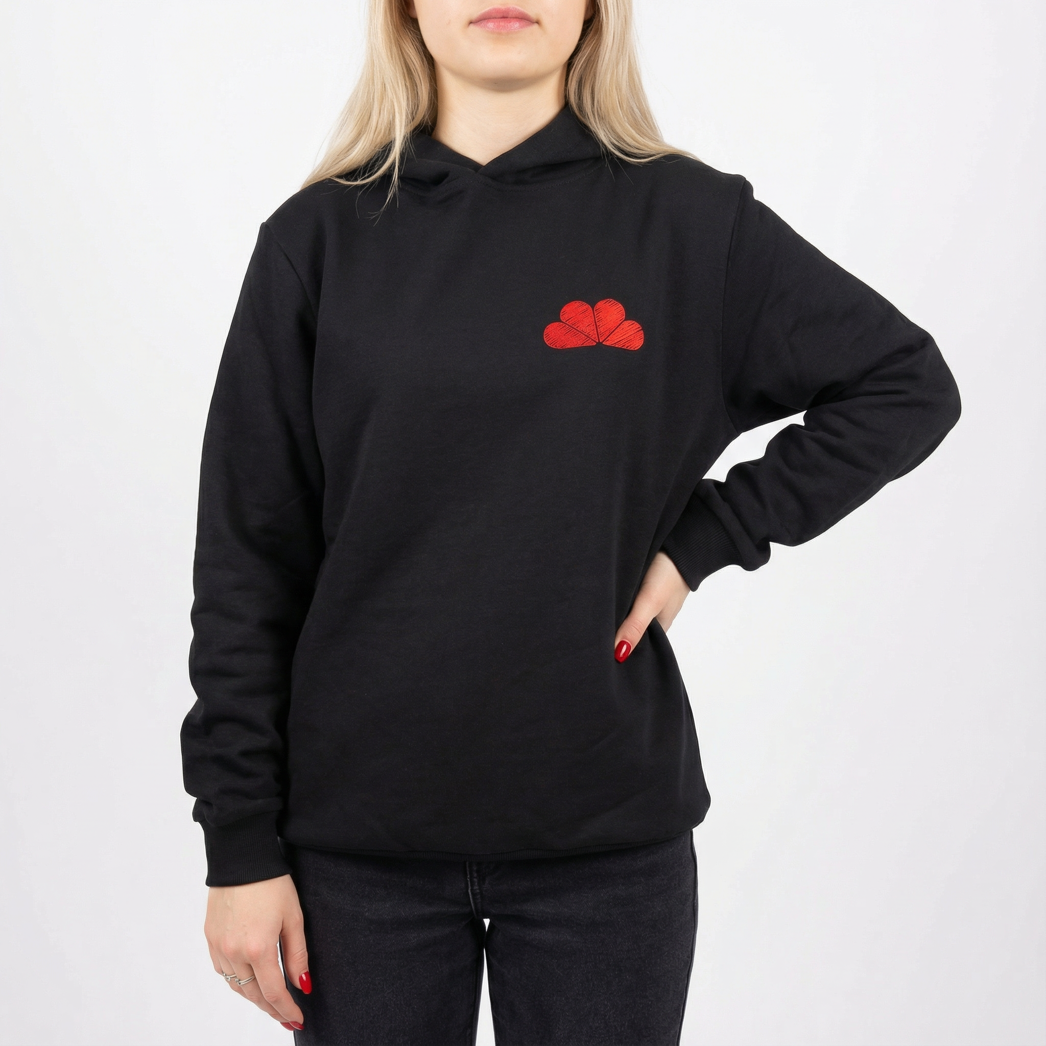 Классическое худи унисекс с капюшоном и спущенным плечом.