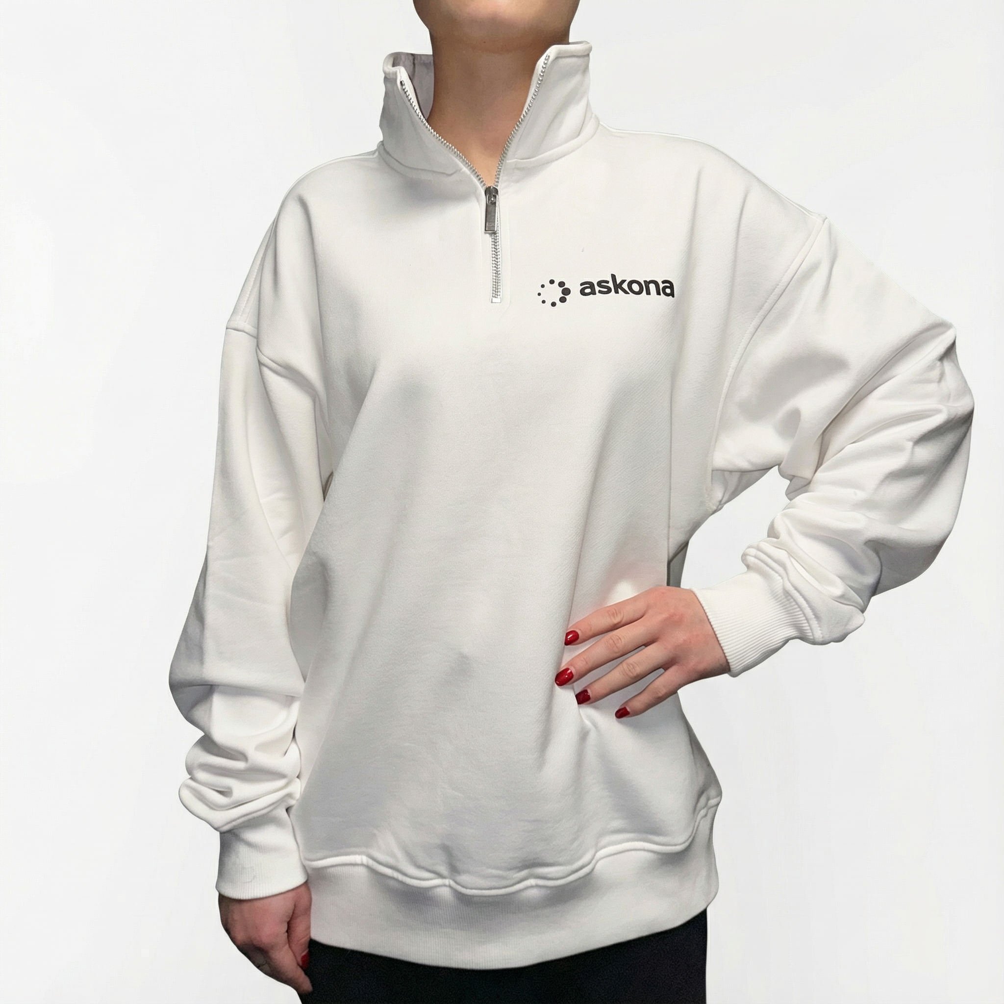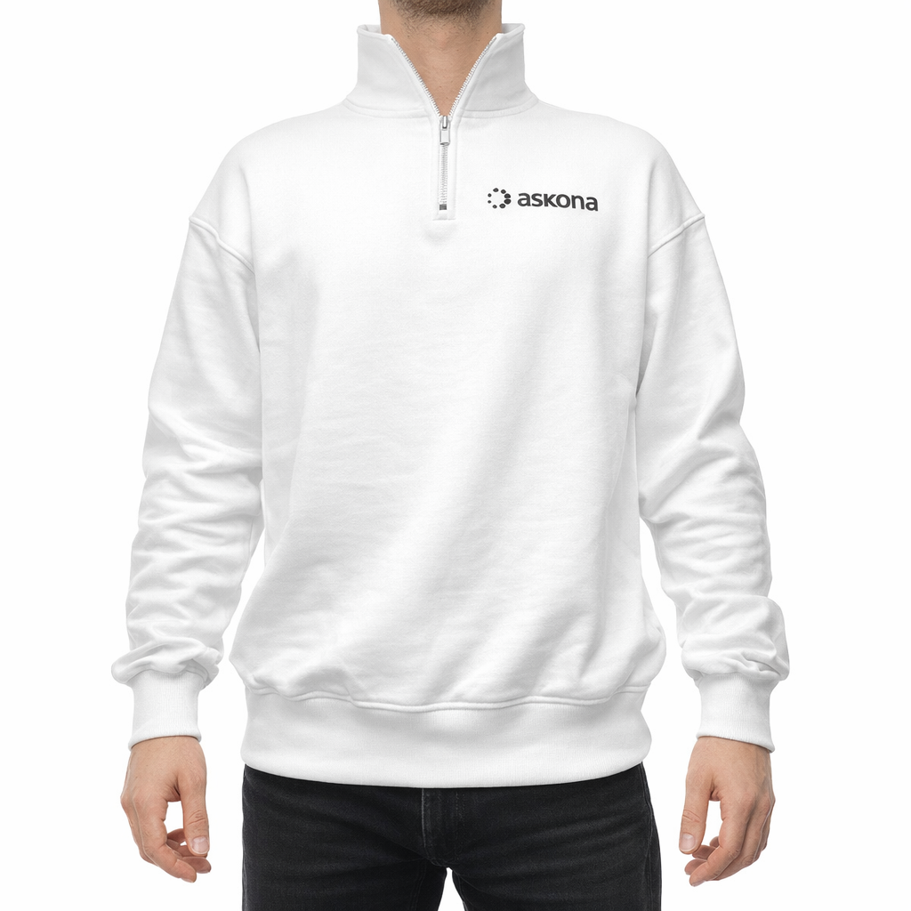 Универсальная толстовка с воротником-стойкой и заниженной линией плеча. По нижнему краю и на рукавах — эластичные резинки для комфортной и аккуратной посадки. Модель застёгивается на металлическую молнию.